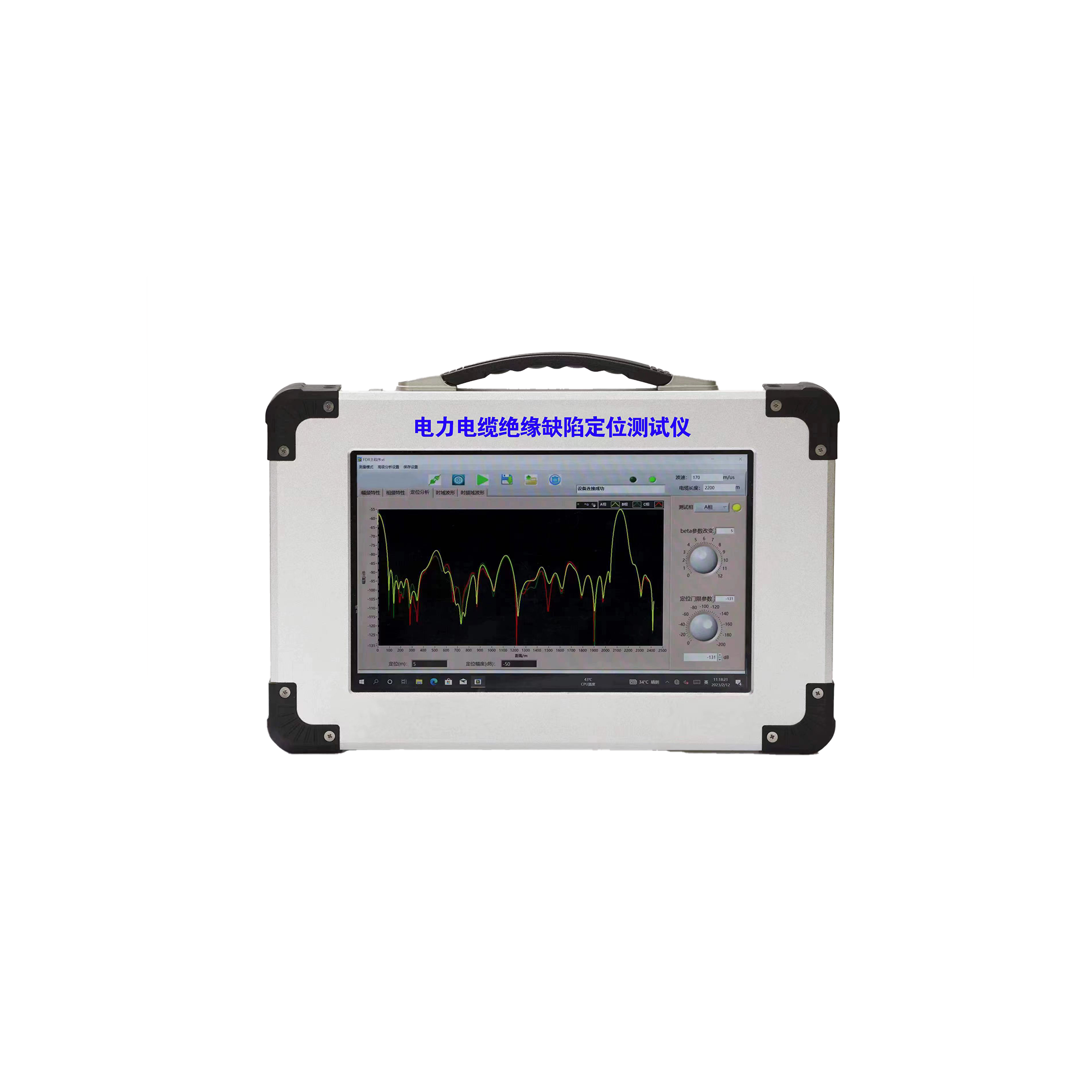 技術特點以及優勢:本公司研發的電纜絕緣缺陷定位測試儀是一款自帶可充電電池的便攜式儀器,可實現對電力電纜絕緣缺陷的微弱信號進行無損測試,準確定位缺陷點位置,解決了傳統時域反射法(time domain reflection,TDR)對電纜微弱局部缺陷進行定位時存在的不足。該儀器對電纜局部缺陷及中間接頭具有較高的識別靈敏度和定位精度。該儀器采用頻域測量原理,通過在電纜一端注入 指定頻率的低壓正弦線性掃頻信號,然后分析在阻抗不連續處發生的反射波,計算電纜阻抗不連續點的位置,從而確定電纜缺陷點。該技術打破了國外技術壟斷,實現了核心技術國產化,大幅 降低了電力電纜絕緣缺陷定位測試成本。